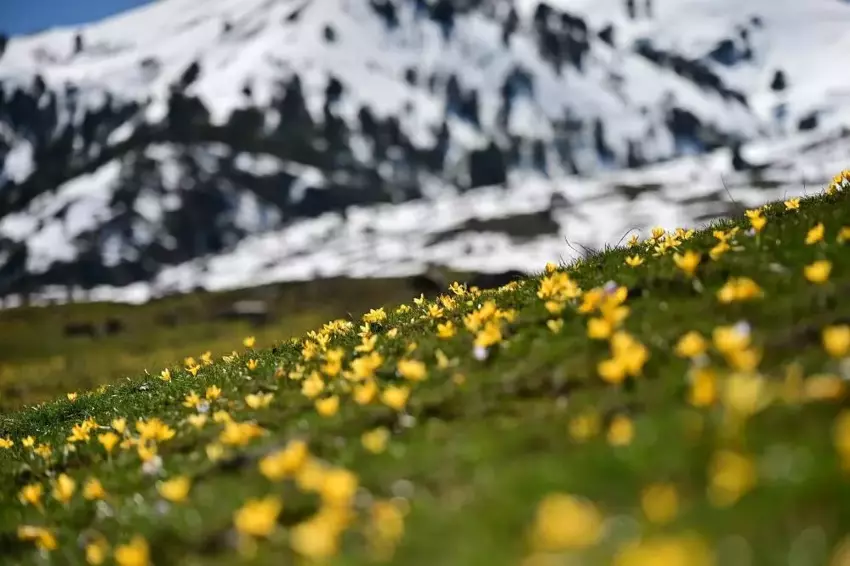 Bölgenin yüksek kesimlerinde kış mevsiminden kalan kar kütleleri henüz tam olarak erimemişken, vadi tabanı boydan boya sarı ve mor renkli çiğdem çiçekleriyle kaplandı. Karların arasından fışkıran bu renkli bitki örtüsü, vadi boyunca metrelerce uzanan doğal bir halı görüntüsü oluşturarak ziyaretçileri büyüledi.