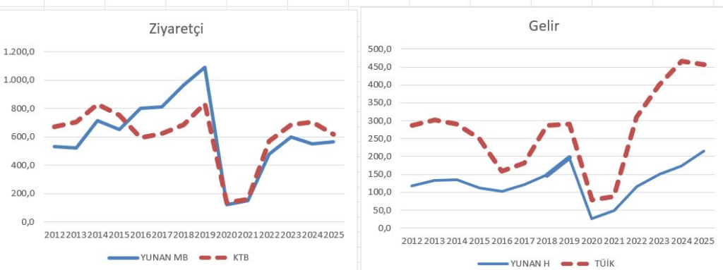 - TÜİK Verileri: Türkiye’ye gelen Yunan turistlerin toplamda 456 milyon dolar harcama yaptığı belirtiliyor.
