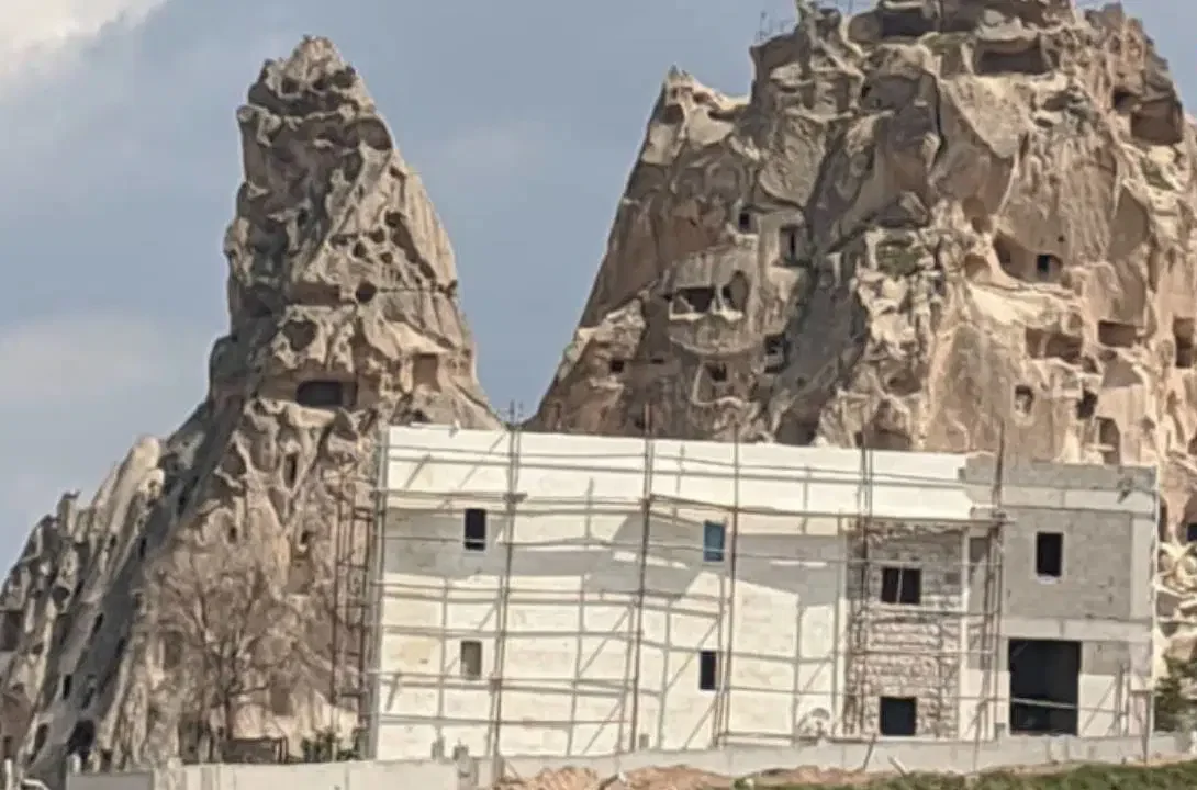 NEVŞEHİR – UNESCO Dünya Miras Listesi’nde yer alan Kapadokya, hızla artan yapılaşma ve betonlaşma baskısı altında kalmaya devam ediyor. Son olarak Uçhisar Kalesi’nin kuzey-batı yamacında, Uçhisar-Göreme Çevre Yolu üzerinden görülebilen noktada başlatılan 5 odalı yeni otel inşaatı, bölgenin tarihi ve doğal dokusuna dair endişeleri yeniden gündeme taşıdı. Söz konusu projenin, tarihi bir yapının restorasyonu yerine tamamen yeni bir beton bina olarak inşa edilmesi tepki çekiyor.